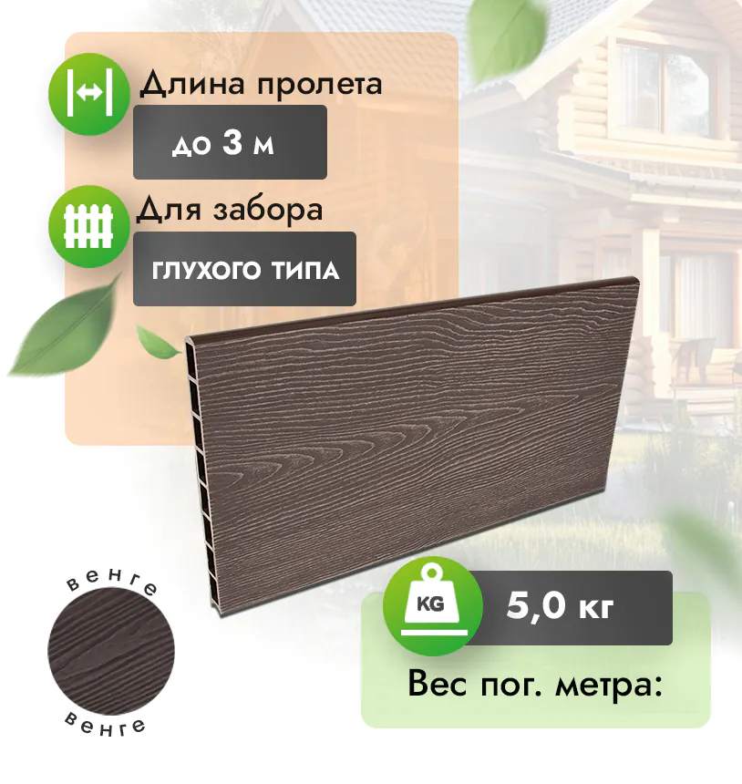 Наши заборные доски из ДПК выдерживают до 3318 кг/м2, влагостойкие, не требуют ухода.